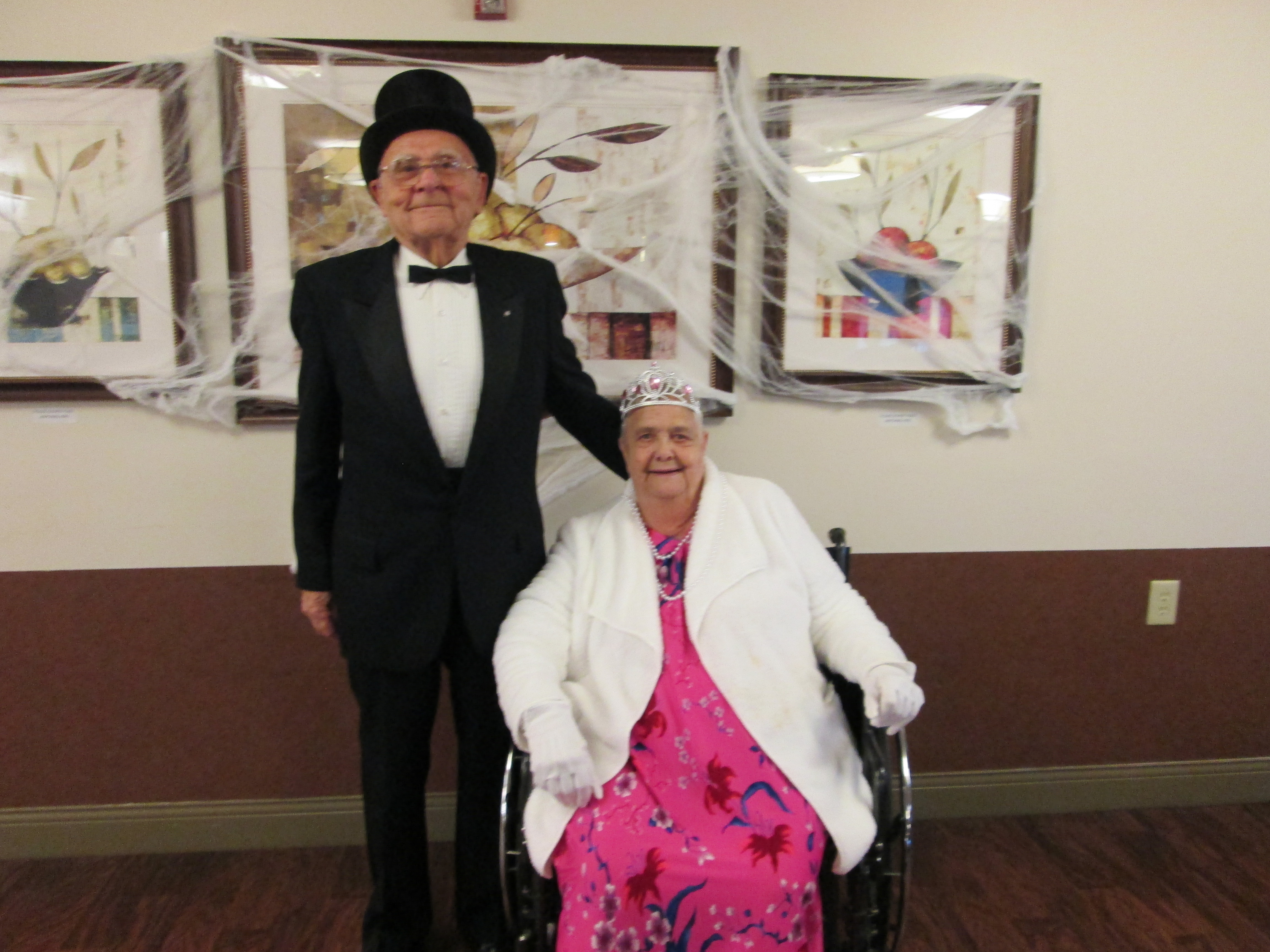"Partners for Life: King and Queen" -- So confident as Queen and King they walked in the activity room during the Halloween Contest shouting "make way! Make way! Hail to Queen Bee!" They were crowned winners of the contest.